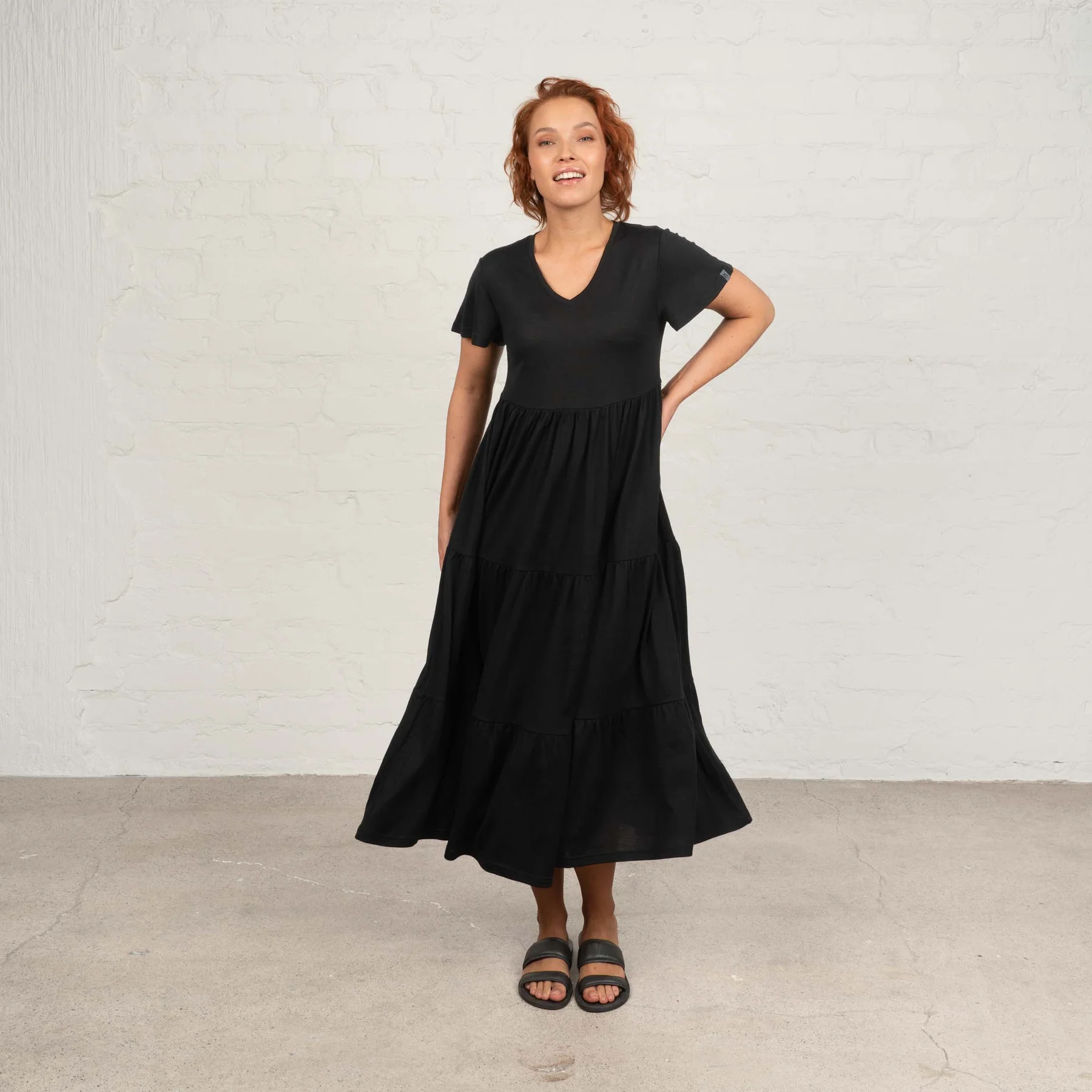 En lätt klänning i merinoull för sommarbruk.