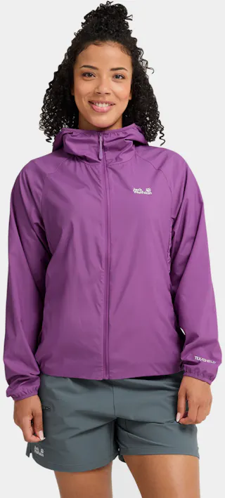 Ultralätt, packbart skal för kvinnor. Tillverkad av biobaserad polyamid.