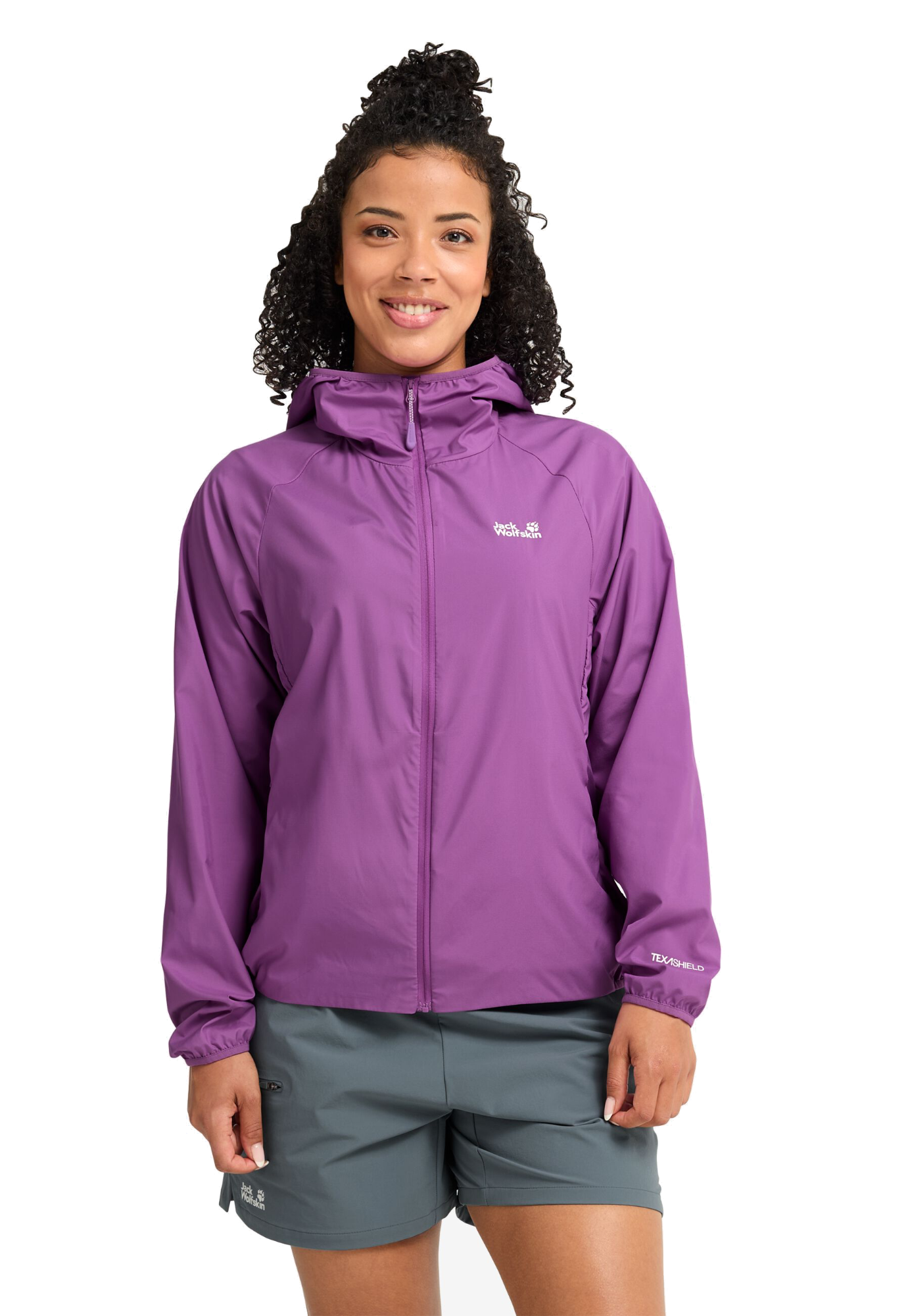 Ultralätt, packbart skal för kvinnor. Tillverkad av biobaserad polyamid.